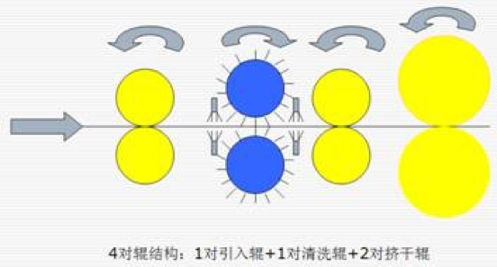 清洗機的擠干輥長期使用會發生損傷,新輥價格昂貴。KH-BQ清洗機的擠干輥可以噴砂清理維修后,重新同步驅動變頻電機的速度后繼續使用,降低了使用成本。